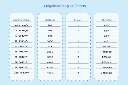 - If the light was red for more than 1 second: €100 + 1 point